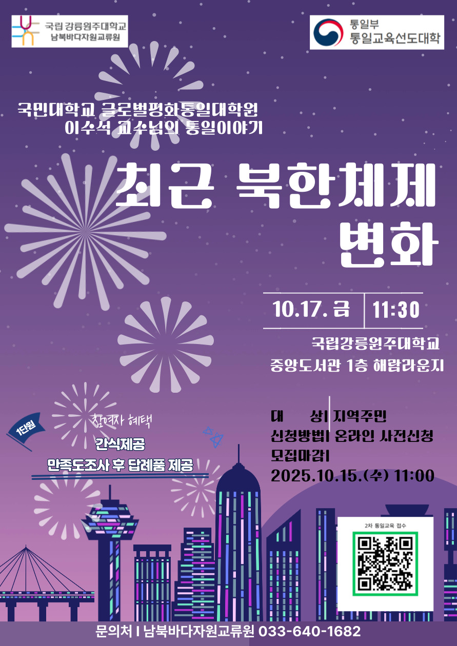 [강릉][남북바다자원교류원] 2025년 제2차 지역주민 통일교육 안내(~10.17.)