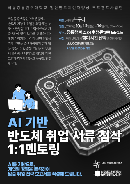 첨단산업인재양성부트캠프사업단 AI 기반 반도체 취업 서류 첨삭 1:1 멘토링 프로그램 안내