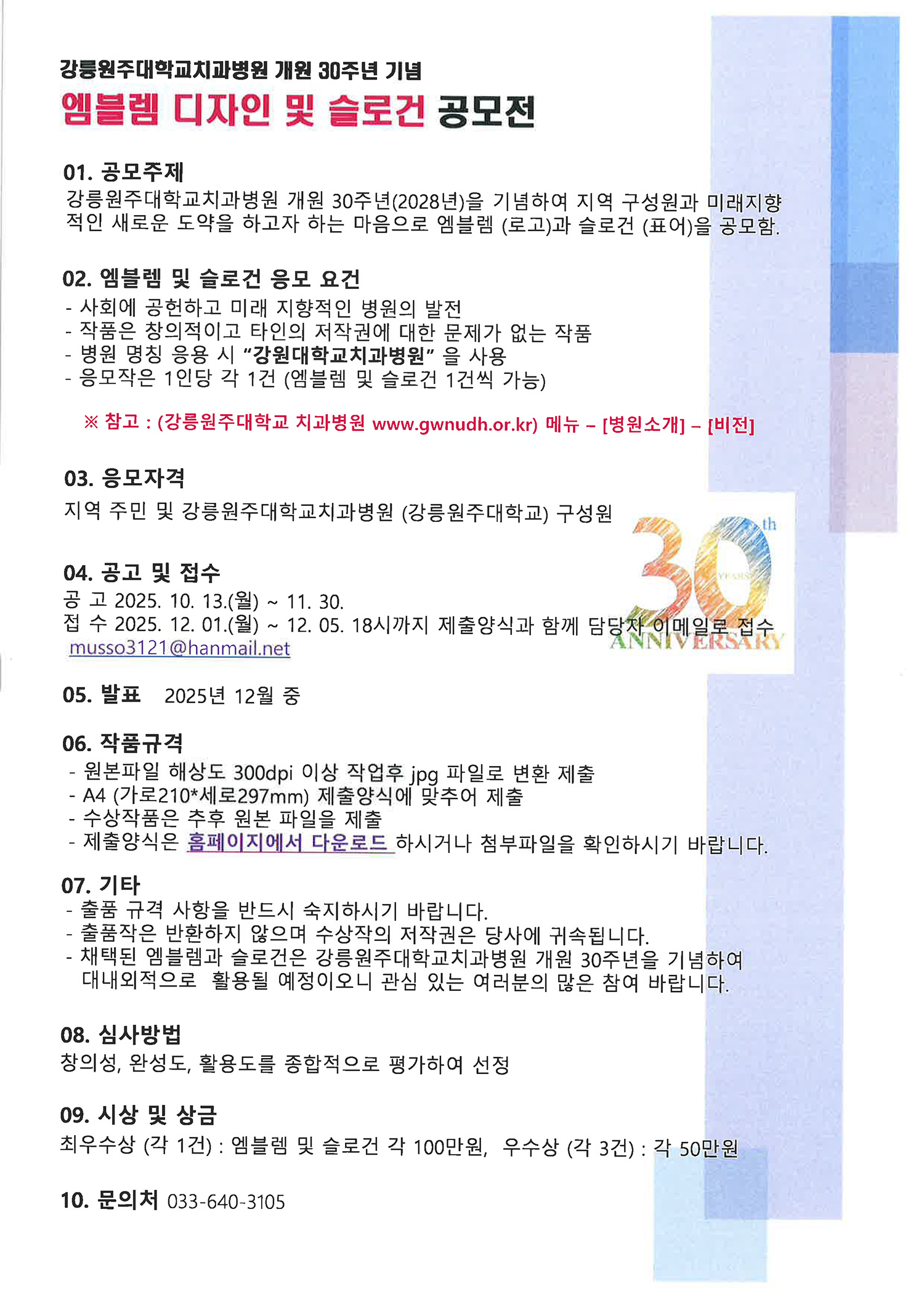 [강릉원주대치과병원] 개원 30주년 기념 엠블렘 디자인 및 슬로건 공모전